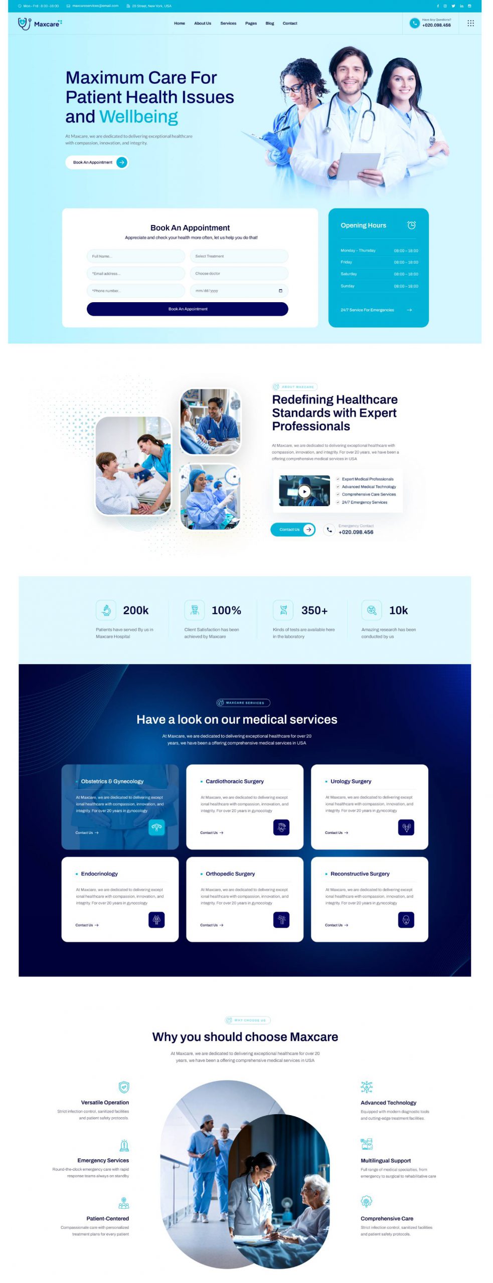We are Maxcare. It is designed as a modern & functional website for Health care and Medical